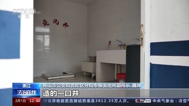 舟山市公安局普陀區(qū)分局東極派出所副所長 魏坤:這個是我們建所以來造的一口井,當(dāng)時也是便于所里的官兵用水方便,當(dāng)時我們島上也是缺水,當(dāng)時的老百姓都到我們這邊來打水,所以說這口井,也是開放共享給他們的。