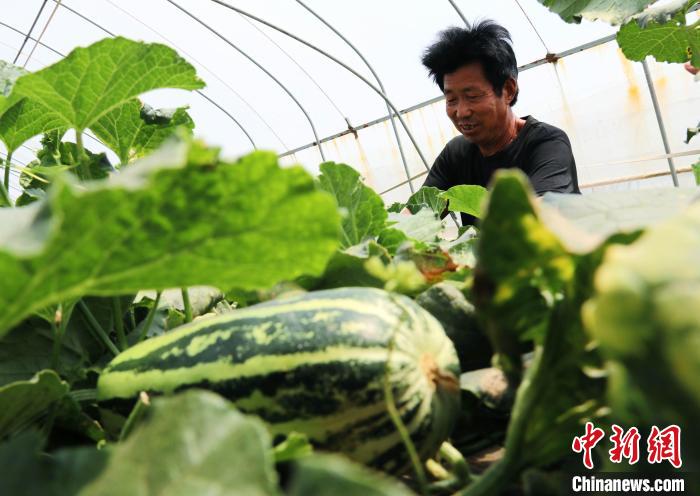 資料圖:村民正在大棚里管理甜瓜?!≯袢A 攝