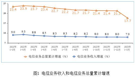 中新網(wǎng)3月23日電 工信部23日發(fā)布2023年1-2月份通信業(yè)經(jīng)濟運行情況。1-2月份,信息通信行業(yè)整體運行平穩(wěn)。電信業(yè)務(wù)收入和業(yè)務(wù)總量穩(wěn)步增長,云計算等新興業(yè)務(wù)拉動作用持續(xù)增強;5G、千兆光網(wǎng)、物聯(lián)網(wǎng)等新型基礎(chǔ)設(shè)施建設(shè)穩(wěn)步推進,網(wǎng)絡(luò)連接終端用戶規(guī)模不斷擴大。