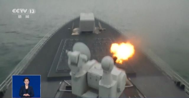 剛剛到達(dá)預(yù)定海域,無錫艦雷達(dá)就發(fā)現(xiàn)海上目標(biāo),官兵立即進(jìn)入戰(zhàn)斗狀態(tài)。鎖定目標(biāo)后,無錫艦主炮連續(xù)開火成功摧毀海上目標(biāo)。此時(shí),雷達(dá)發(fā)現(xiàn)空中目標(biāo)來襲。雷達(dá)鎖定目標(biāo)后,副炮迅速對(duì)空中目標(biāo)進(jìn)行打擊。同時(shí),無錫艦連續(xù)發(fā)射多枚干擾彈,并快速機(jī)動(dòng)規(guī)避。