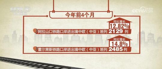 最新統(tǒng)計顯示,今年前4個月,阿拉山口鐵路口岸進(jìn)出境中歐(中亞)班列2129列,同比增長12.82%。霍爾果斯鐵路口岸進(jìn)出境中歐(中亞)班列2485列,同比增長14.8%,亞歐“黃金通道”作用日益突顯。