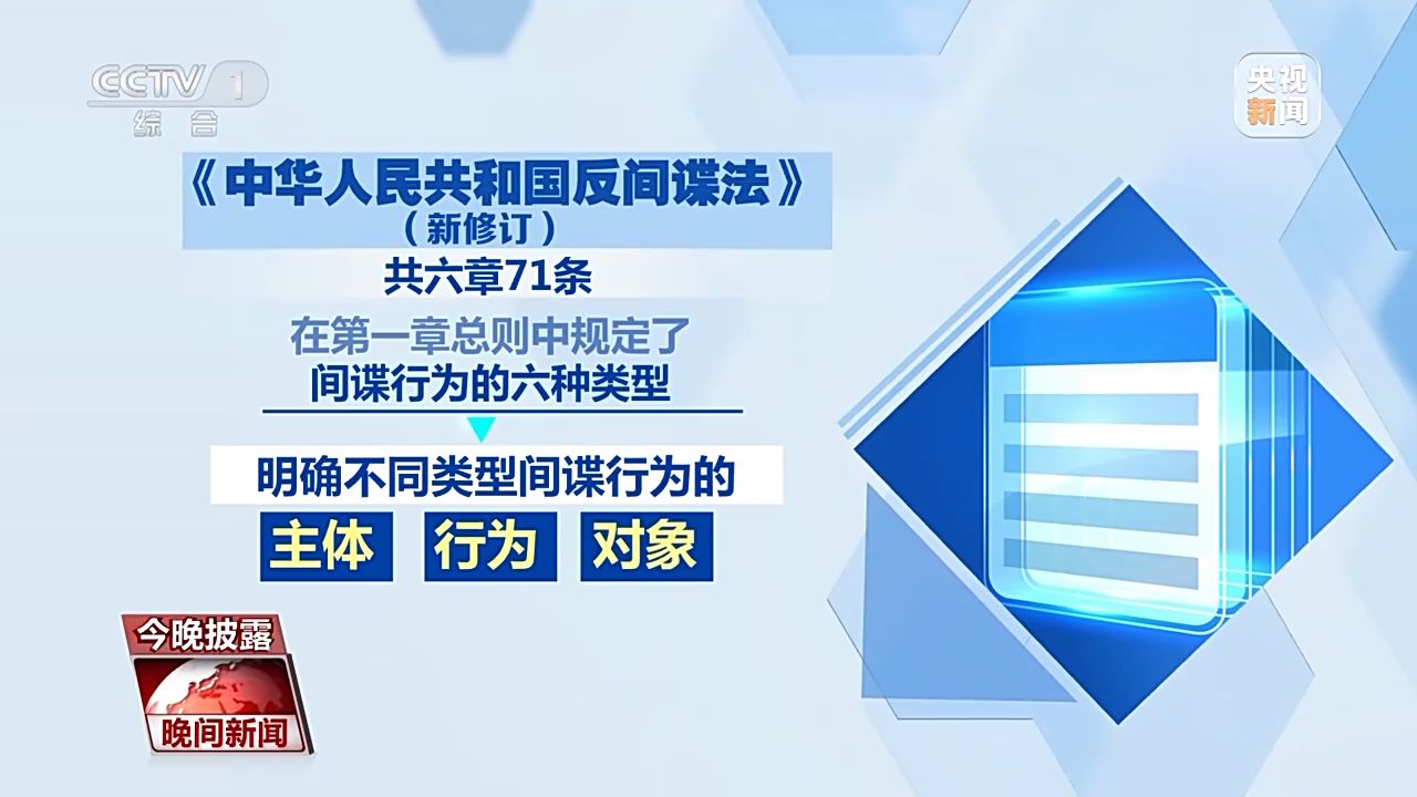國(guó)家安全是安邦定國(guó)的重要基石。近年來(lái),我國(guó)面臨的安全威脅日趨多元,反間諜斗爭(zhēng)形勢(shì)也更加嚴(yán)峻復(fù)雜。從本月起,新修訂的《反間諜法》開(kāi)始施行。新法對(duì)間諜行為,做出進(jìn)一步充實(shí)和細(xì)化。那么按照新法,哪些行為將被認(rèn)定為間諜行為?作為普通群眾,一旦發(fā)現(xiàn)間諜行為,又該如何處理呢?今晚披露,一塊來(lái)關(guān)注。