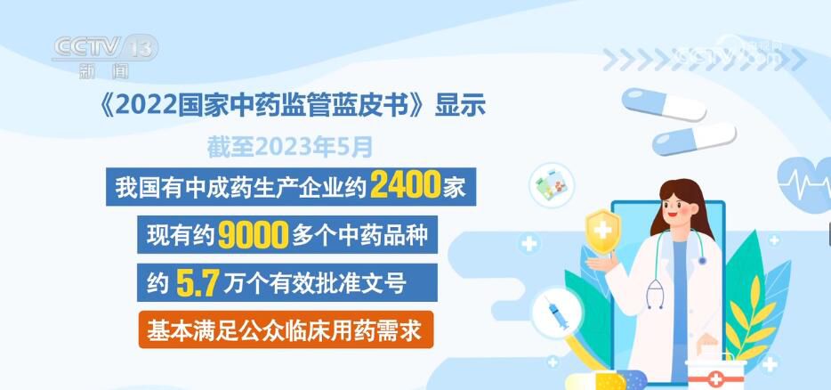 《2022國家中藥監(jiān)管藍(lán)皮書》顯示,截至2023年5月,我國有中成藥生產(chǎn)企業(yè)約2400家,現(xiàn)有約9000多個(gè)中藥品種,約5.7萬個(gè)有效批準(zhǔn)文號,基本滿足公眾臨床用藥需求。