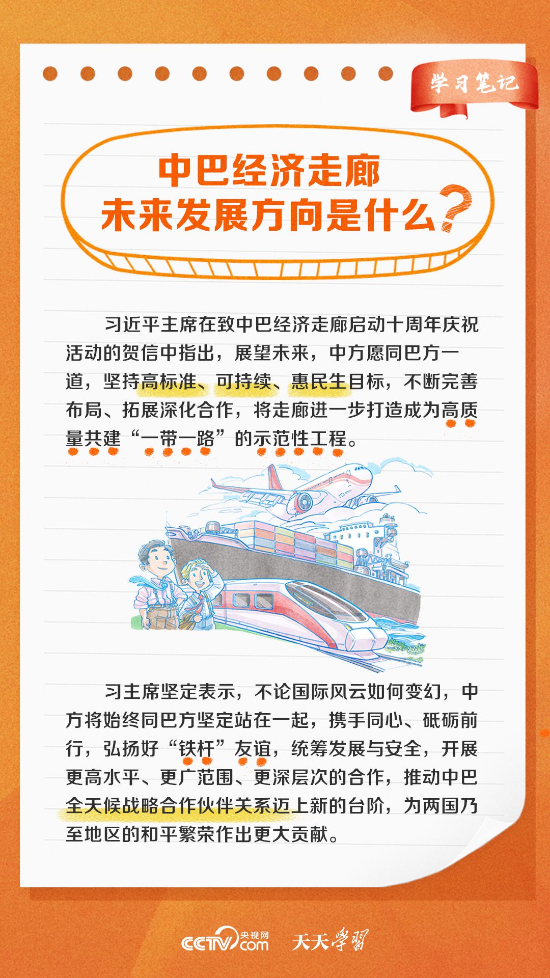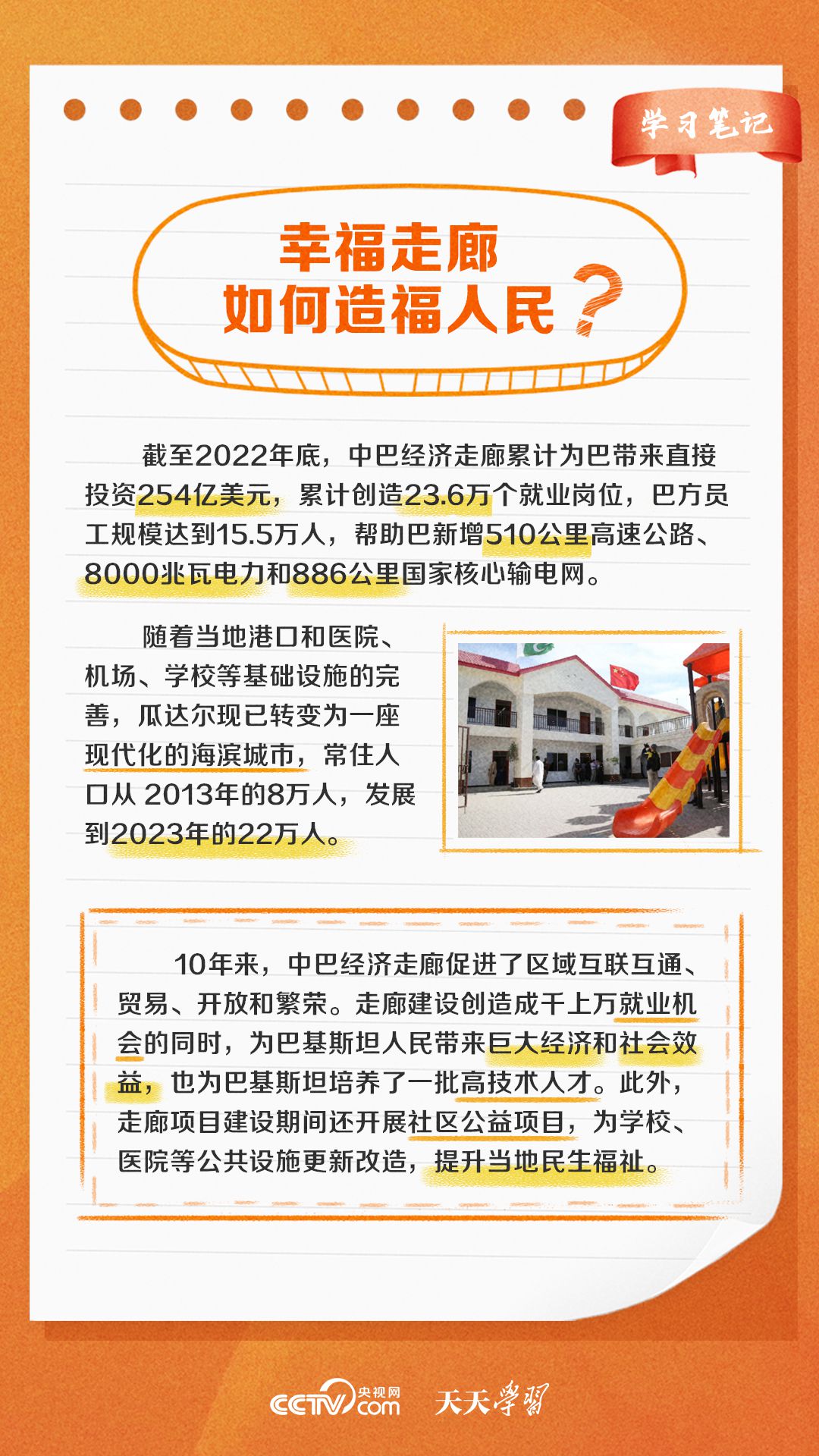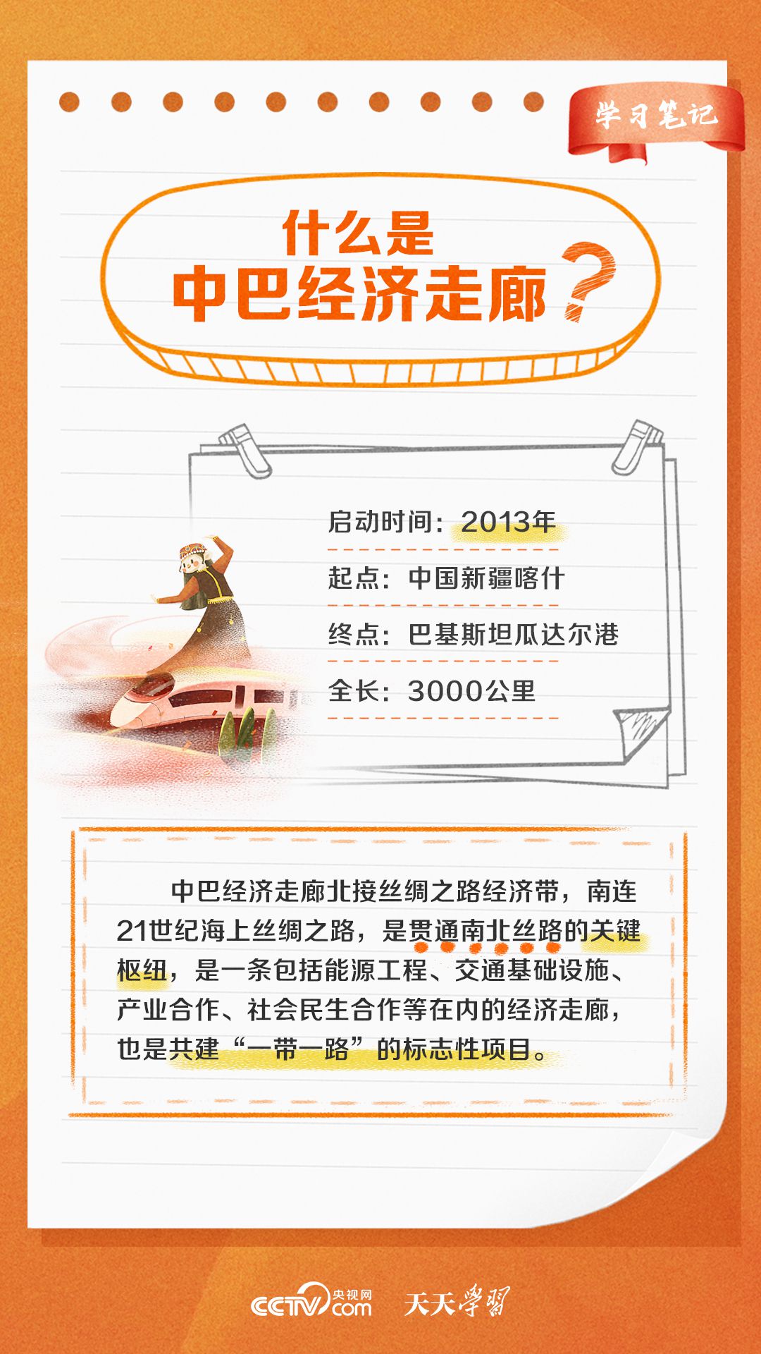 今年是習近平主席提出共建“一帶一路”倡議十周年,也是中巴經濟走廊啟動十周年。經過十年的發(fā)展,中巴經濟走廊已成為中巴友誼“新標桿”。央視網《天天學習·學習筆記》特梳理中巴經濟走廊相關知識點,與您一起學習。