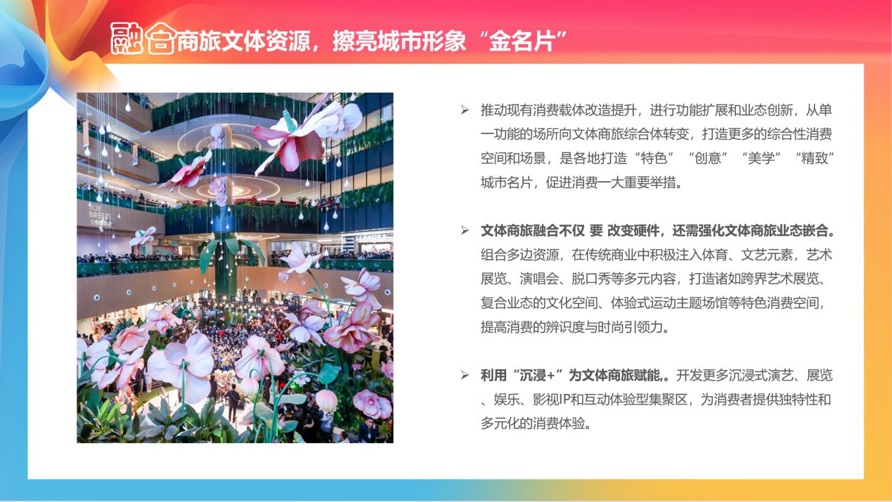 《報告》認(rèn)為,推動現(xiàn)有消費載體改造提升,進(jìn)行功能擴(kuò)展和業(yè)態(tài)創(chuàng)新,從單一功能的場所向文體商旅綜合體轉(zhuǎn)變,打造更多的綜合性消費空間和場景,是各地打造“特色”“創(chuàng)意”“美學(xué)”“精致”城市名片,促進(jìn)消費一大重要舉措。