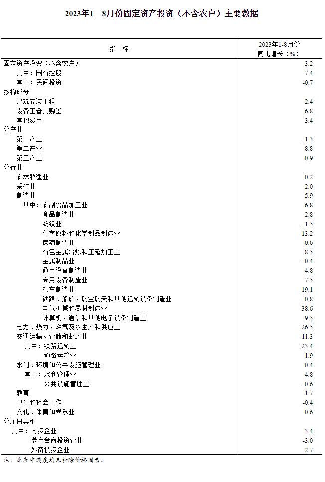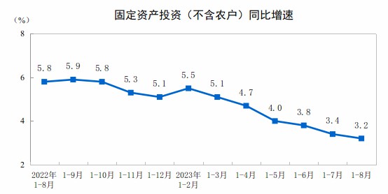 國家統(tǒng)計局:2023年1—8月份全國固定資產(chǎn)投資增長3.2%
