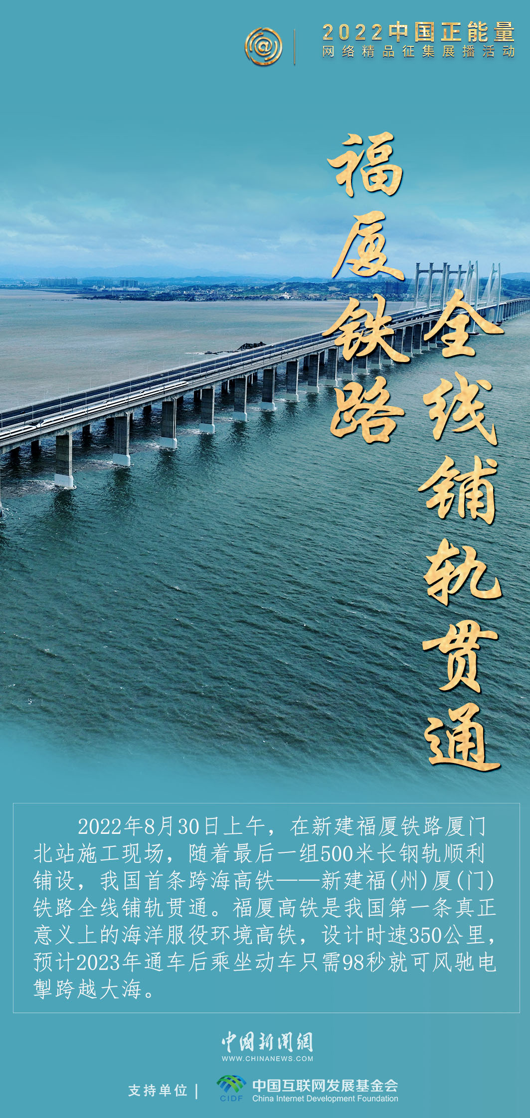 2022年是我國(guó)交通建設(shè)碩果累累的一年,我國(guó)首條跨海高鐵——新建福(州)廈(門(mén))鐵路全線鋪軌貫通,新疆和若鐵路通車運(yùn)營(yíng),世界首條環(huán)沙漠鐵路線正式完成“最后一塊拼圖”,穿山越嶺、橫越大海,中國(guó)交通一路向前。