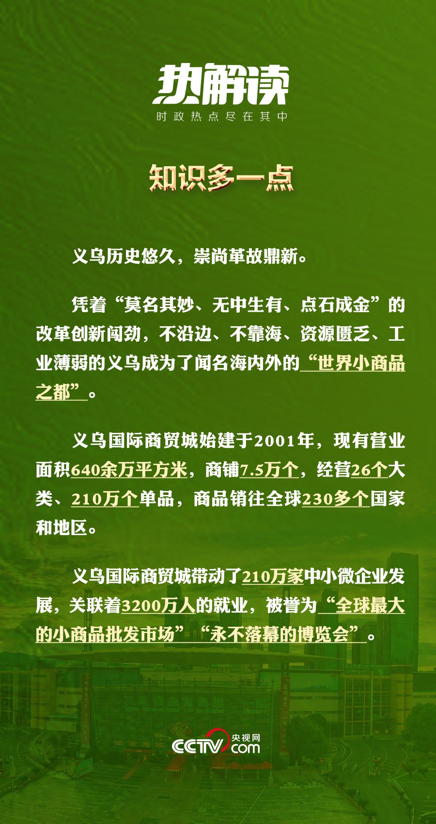 “小生意”也能闖出“大市場”。這座全球單體面積最大的小商品批發(fā)市場共有7.5萬家商鋪,年成交額超過2000億元;來自世界各地的客商到這里采購商品、洽談合作,日均客流量超過20萬人次;平均每天有3000萬件快遞從這里發(fā)出,寄給全球各地的客戶……