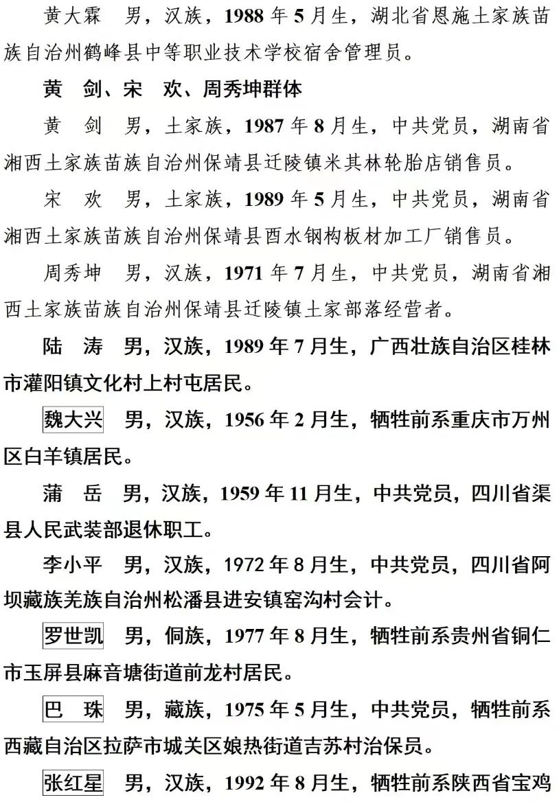 上榜勇士中,有兩度下到沼氣彌漫的污水井救人英勇犧牲的工程師蔡文;有因救火導(dǎo)致二度燒傷的“00后”小伙兒梁博;有身患腿疾仍潛水勇救溺水幼童的七旬老人顧寶賢;有進(jìn)入充滿毒氣的罐體救人不幸犧牲的李滕輝;有協(xié)助警方追捕毒販?zhǔn)苤貍麑?shí)施開顱手術(shù)的崔紅超;有勇救落水群眾獻(xiàn)出寶貴生命的肖坤琦、徐輝、楊傳義、劉學(xué)家、郭字宏、李士存……勇士們在危急時(shí)刻挺身而出、見義勇為,保護(hù)國家利益、集體利益和人民群眾生命財(cái)產(chǎn)安全,他們的事跡可歌可泣,感人肺腑。