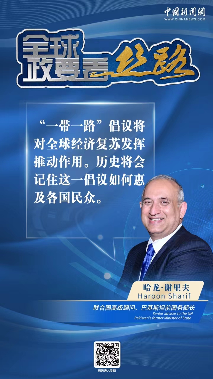 聯(lián)合國(guó)高級(jí)顧問(wèn)、巴基斯坦前國(guó)務(wù)部長(zhǎng)哈龍·謝里夫指出,“一帶一路”倡議將對(duì)全球經(jīng)濟(jì)復(fù)蘇發(fā)揮推動(dòng)作用。歷史將會(huì)記住這一倡議如何惠及各國(guó)民眾。