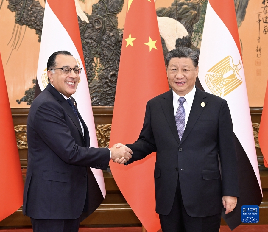10月19日上午,國家主席習(xí)近平在北京人民大會堂會見來華出席第三屆“一帶一路”國際合作高峰論壇的埃及總理馬德布利。