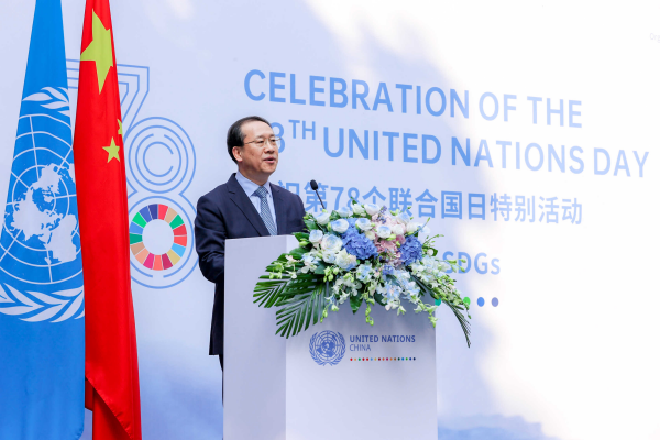 2023年10月23日,外交部副部長(zhǎng)馬朝旭出席聯(lián)合國(guó)發(fā)展系統(tǒng)駐華協(xié)調(diào)員舉辦的“聯(lián)合國(guó)日”慶祝活動(dòng)并發(fā)表致辭。