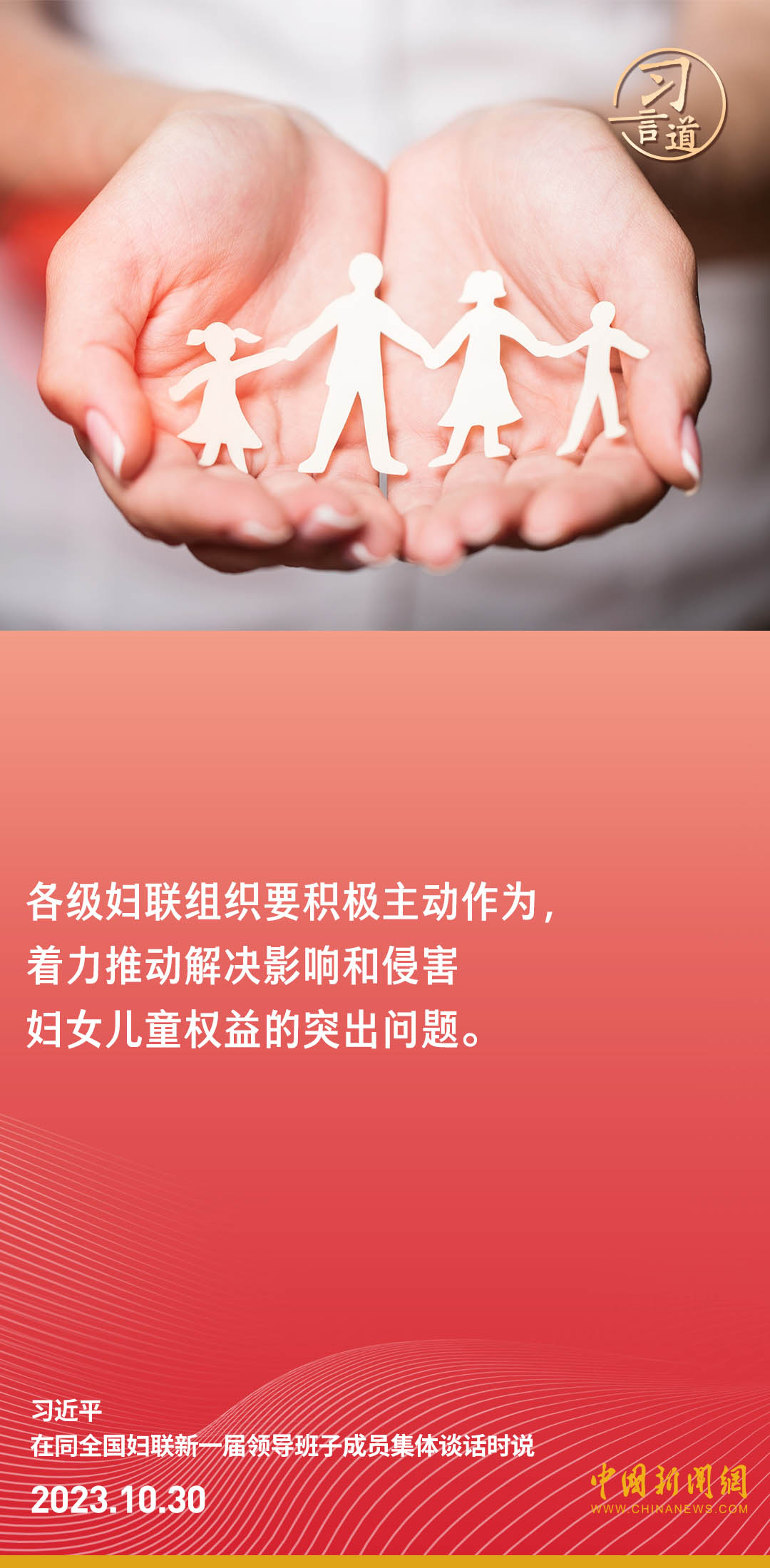 中共中央總書記、國家主席、中央軍委主席習(xí)近平30日下午在中南海同全國婦聯(lián)新一屆領(lǐng)導(dǎo)班子成員集體談話并發(fā)表重要講話。習(xí)近平強調(diào)——