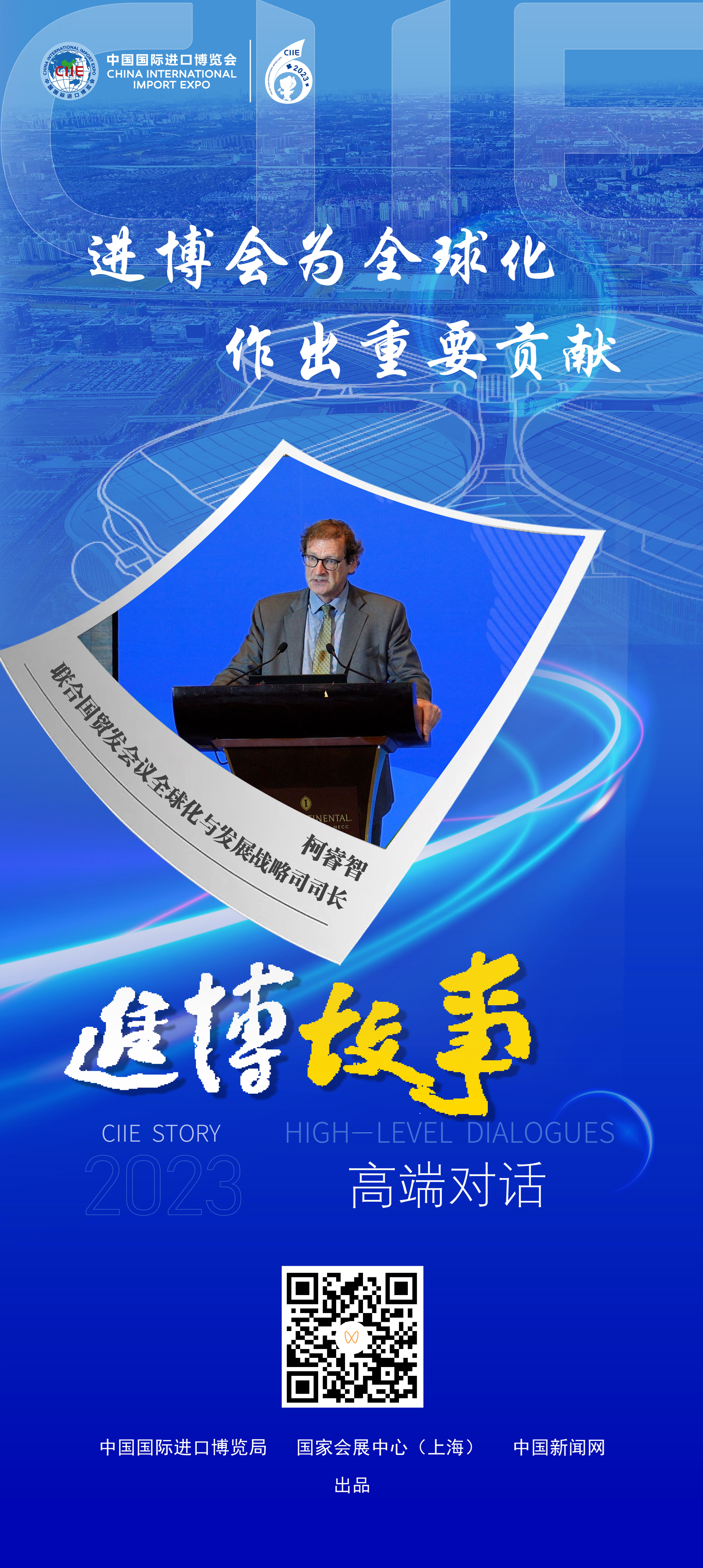 ?。ㄟM(jìn)博故事·高端對(duì)話(huà))專(zhuān)訪聯(lián)合國(guó)貿(mào)發(fā)會(huì)議全球化與發(fā)展戰(zhàn)略司司長(zhǎng)柯睿智:進(jìn)博會(huì)為全球化作出重要貢獻(xiàn)主題海報(bào)