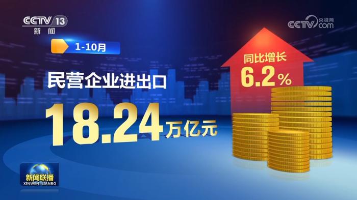 新動能帶動作用持續(xù)釋放,推動外貿(mào)領(lǐng)域積極因素累積增多。前三季度跨境電商進(jìn)出口額達(dá)1.7萬億元,同比增長14.4%,保持較快增長。貿(mào)易結(jié)構(gòu)優(yōu)化升級,1—10月,我國一般貿(mào)易進(jìn)出口增長1.8%,占我國外貿(mào)總值的64.9%,比去年同期提升1.1個(gè)百分點(diǎn)。民營企業(yè)進(jìn)出口18.24萬億元,同比增長6.2%,成為穩(wěn)外貿(mào)主力軍。