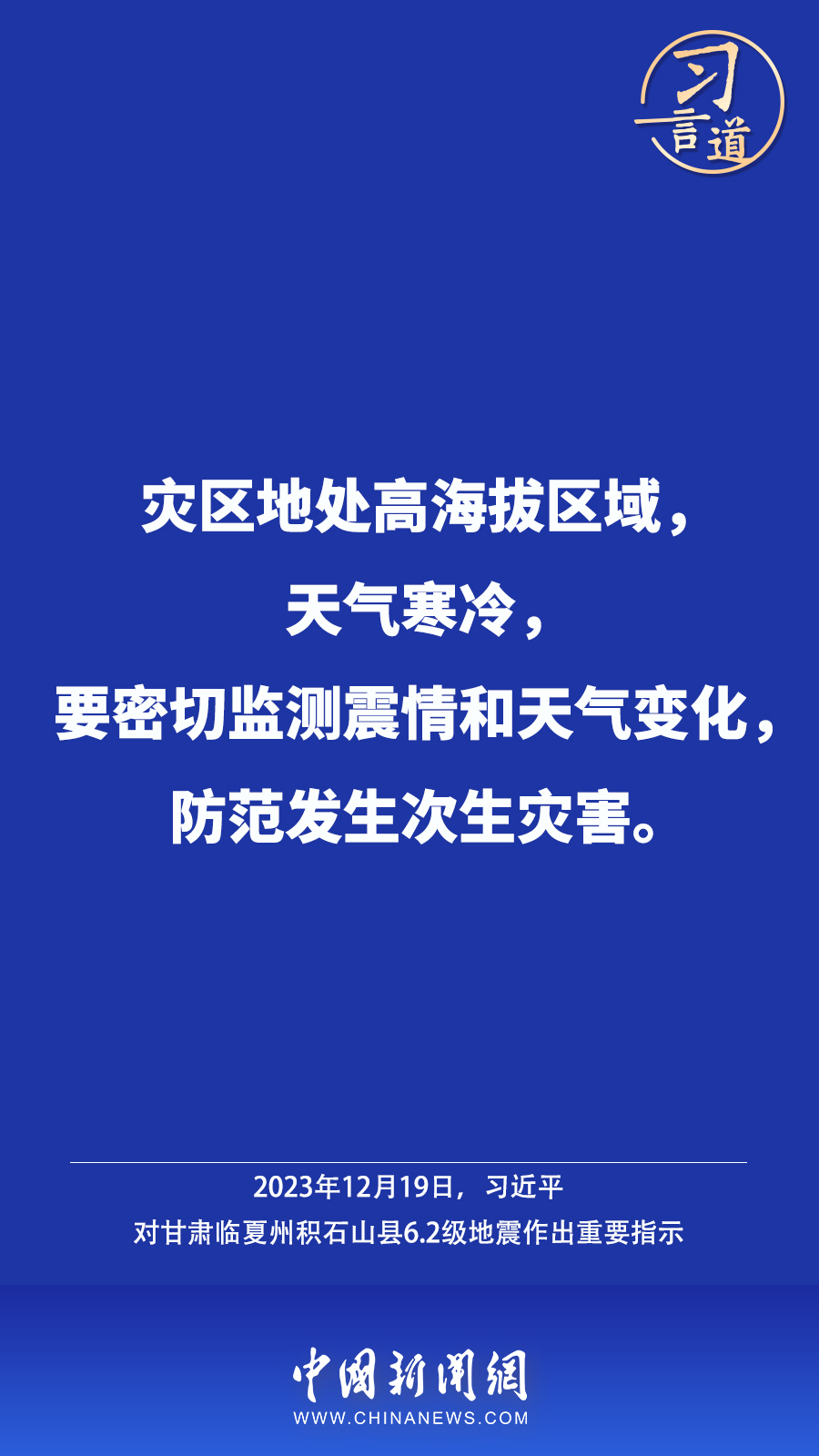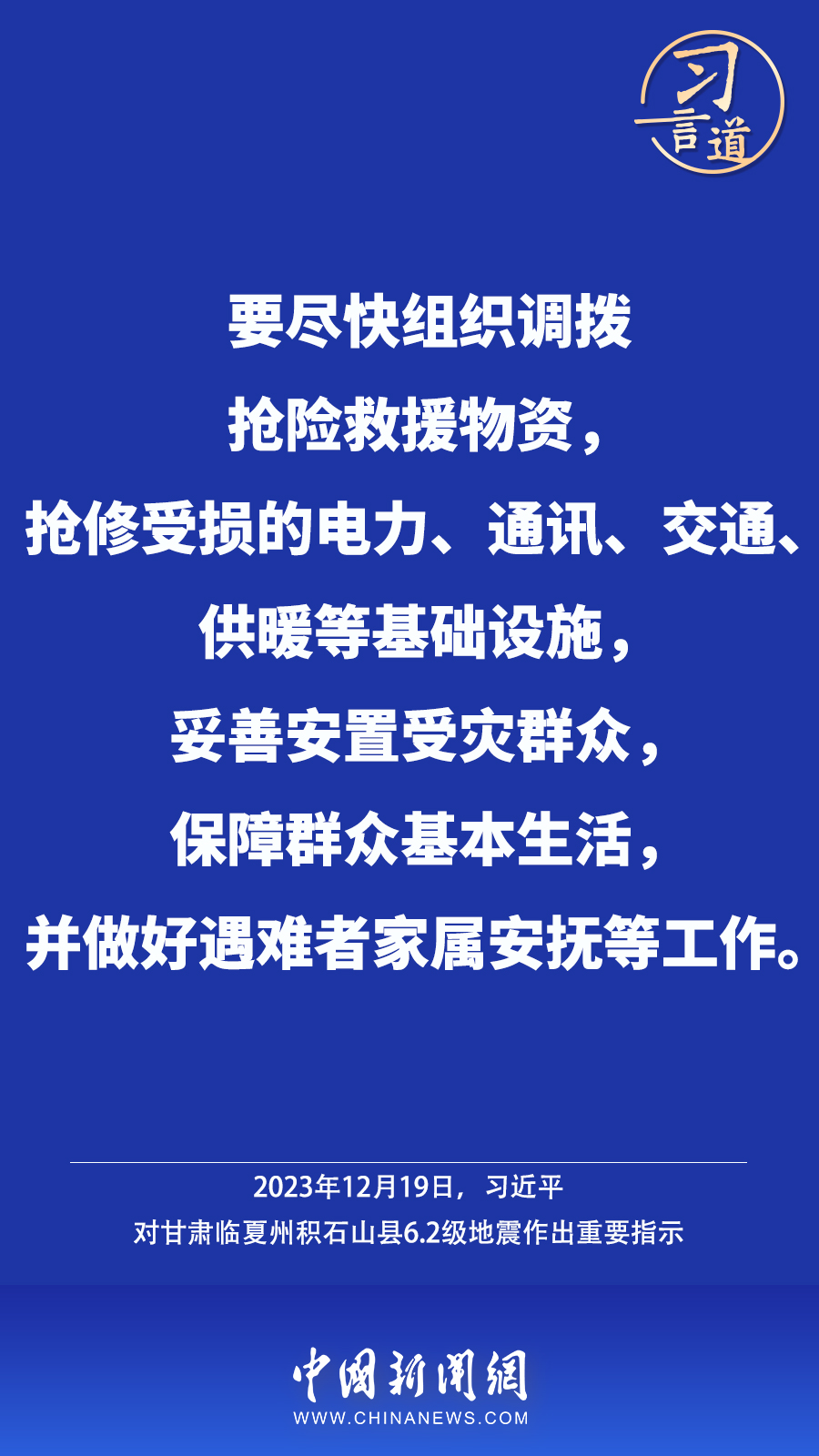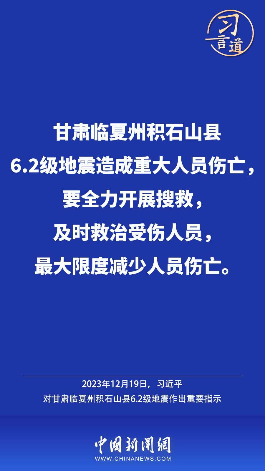 北京時間12月18日23時59分,甘肅臨夏州積石山縣發(fā)生6.2級地震,震源深度10公里。地震發(fā)生后,中共中央總書記、國家主席、中央軍委主席習(xí)近平高度重視并作出重要指示——