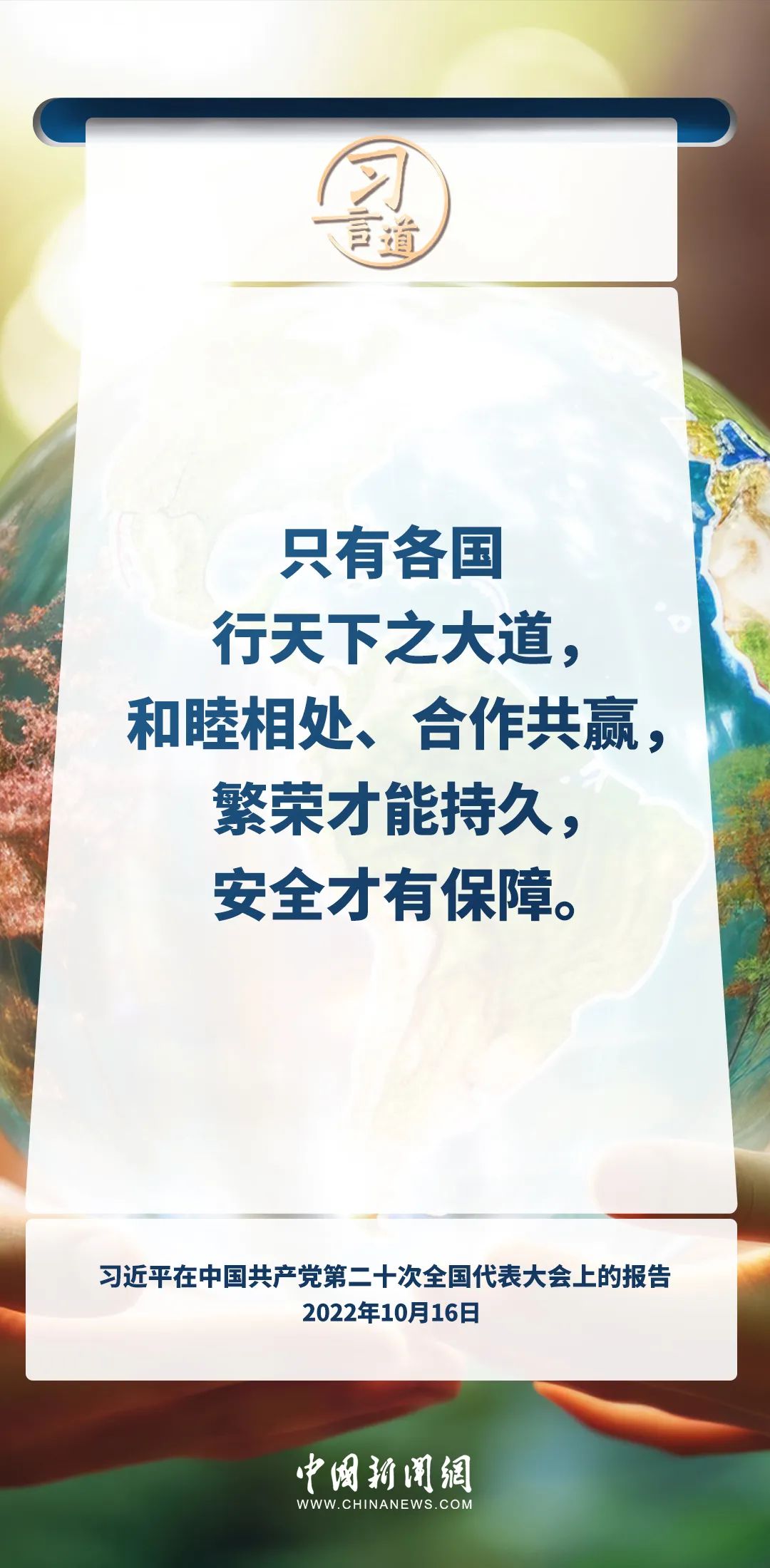 世界好,中國才會(huì)好;中國好,世界會(huì)更好。習(xí)近平主席在多個(gè)重要場合對人類命運(yùn)共同體理念進(jìn)行全面深刻論述,強(qiáng)調(diào)開放包容、合作共贏才是人間正道。
