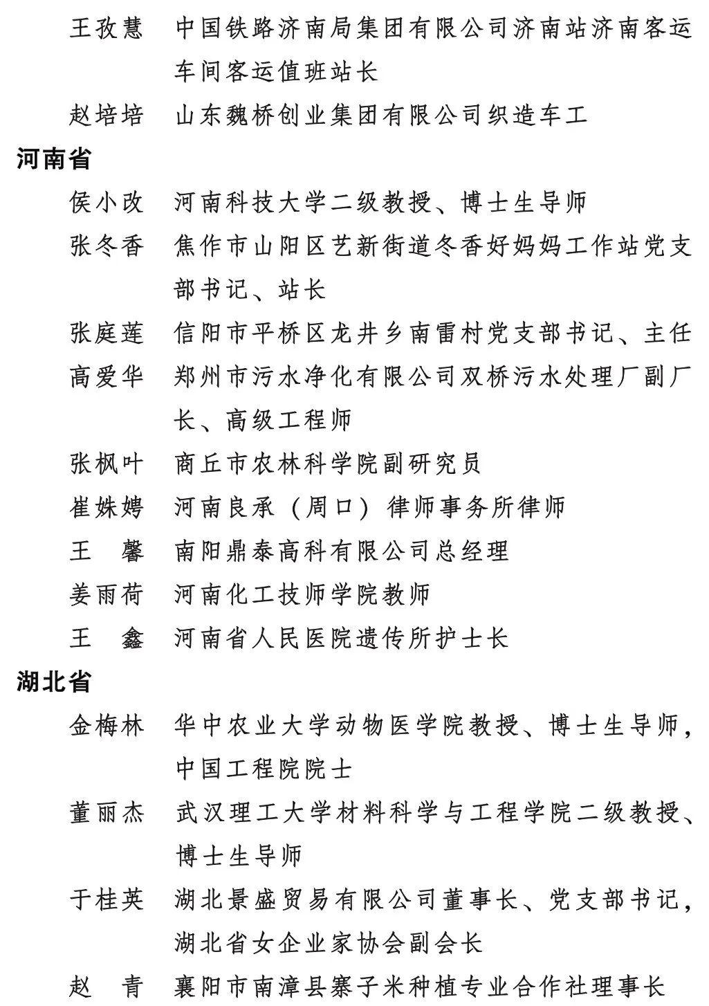 全國(guó)三八紅旗手名單