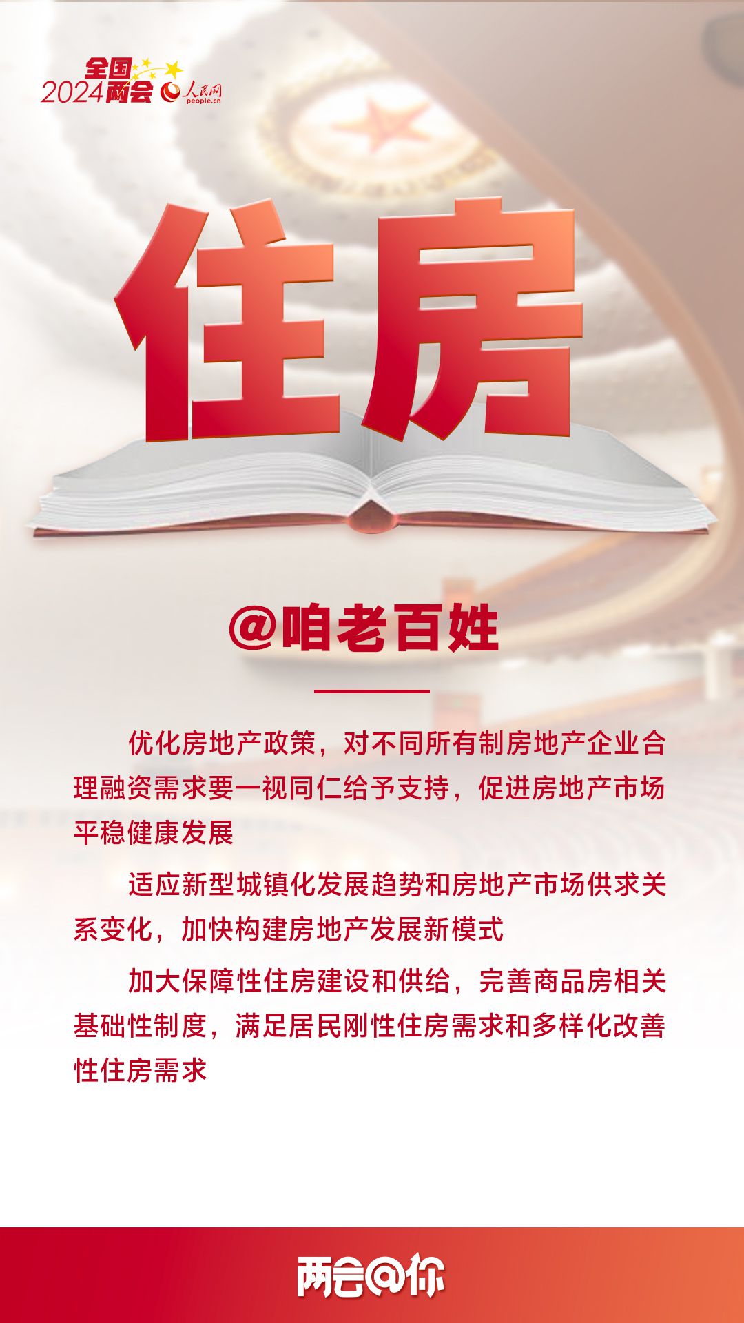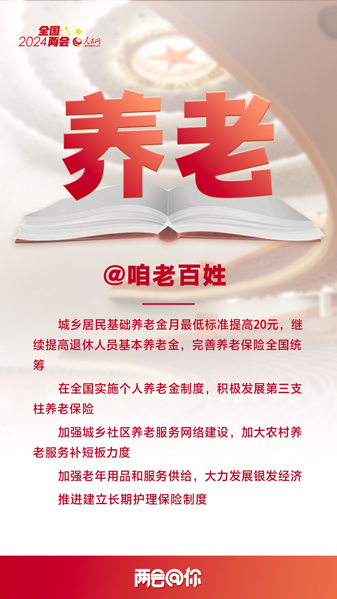 編者按:3月5日,十四屆全國人大二次會議開幕,國務(wù)院總理李強(qiáng)代表國務(wù)院向大會作政府工作報(bào)告,提出2024年經(jīng)濟(jì)社會發(fā)展總體要求和政策取向。即日起,人民網(wǎng)推出“兩會@你”系列報(bào)道,聚焦與百姓生活息息相關(guān)的熱點(diǎn)議題,梳理解讀全國兩會上的重要民生看點(diǎn),以饗讀者。