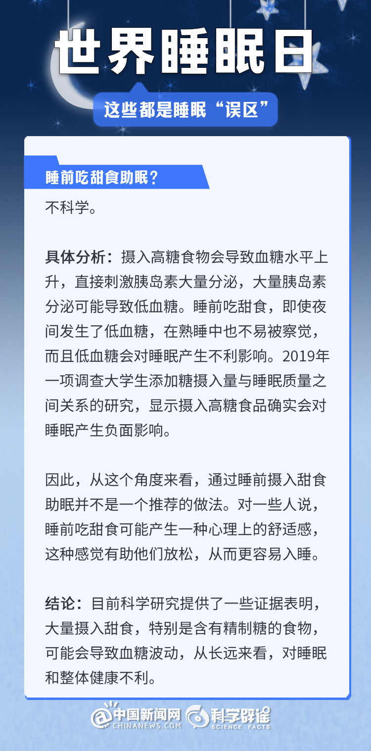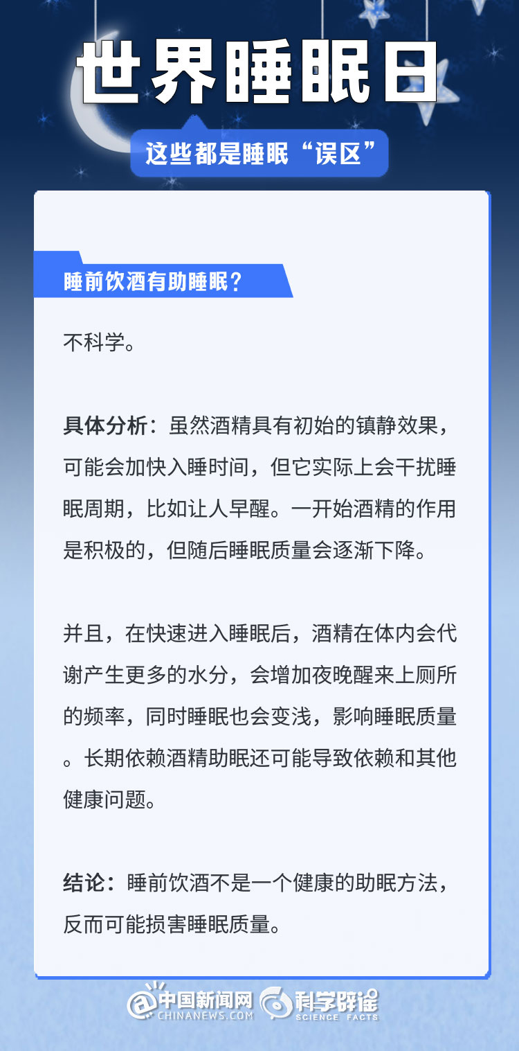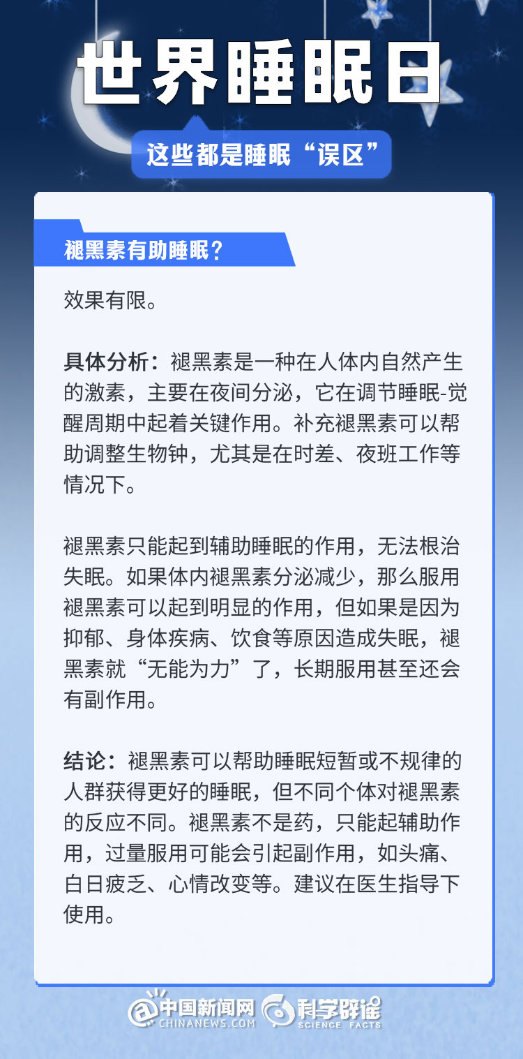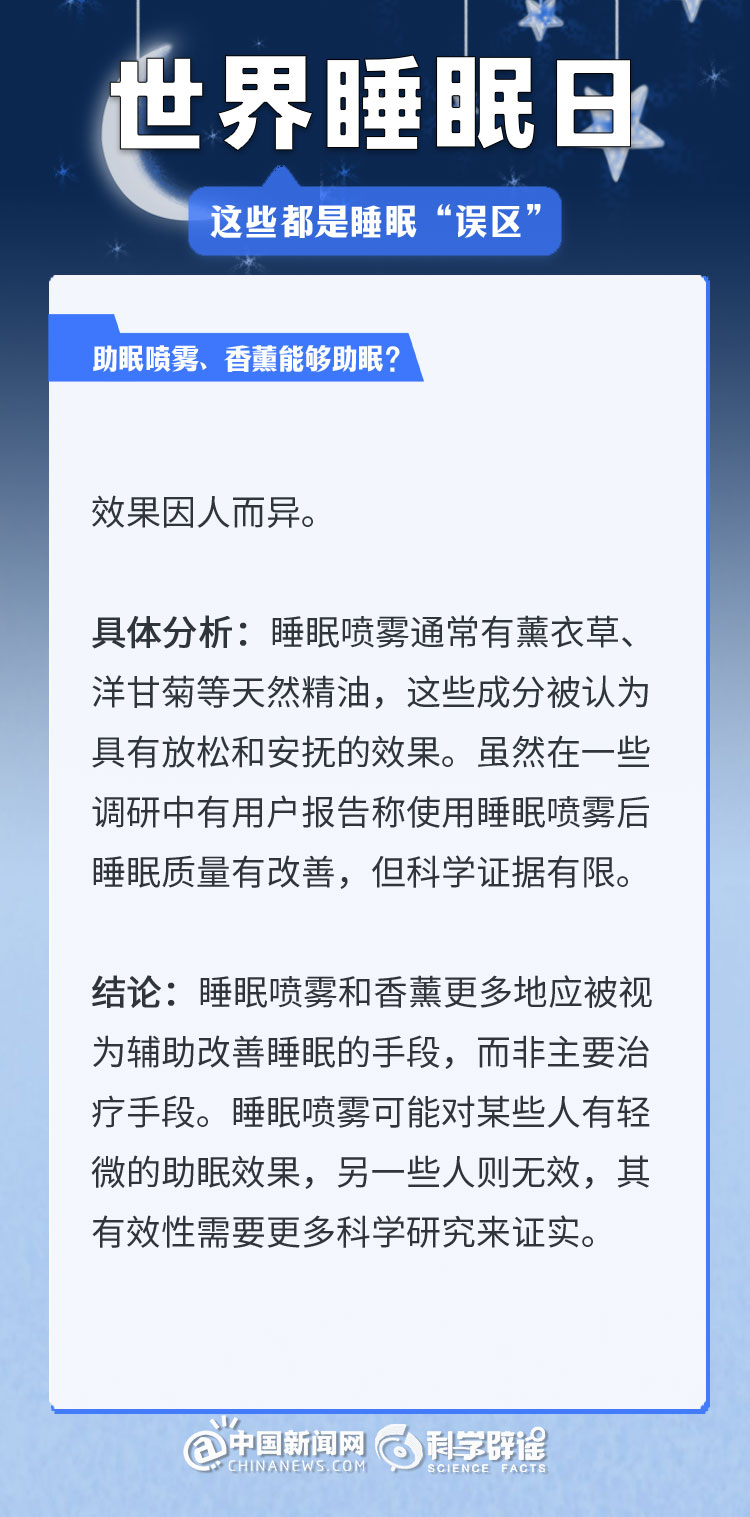 中新網(wǎng)3月21日電 《中國睡眠研究報(bào)告(2024)》顯示,2023年居民睡眠指數(shù)為62.61分,較2022年降低了5.16。去年的報(bào)告中,曾有近半數(shù)民眾每晚平均睡眠時(shí)長不足8小時(shí)(47.55%)。很多人正在經(jīng)受著睡眠問題的困擾,為了避免大家被誤導(dǎo),我們總結(jié)了幾個生活中常見的睡眠誤區(qū),一起來了解一下吧!(來源:科學(xué)辟謠 中國新聞網(wǎng)微博)