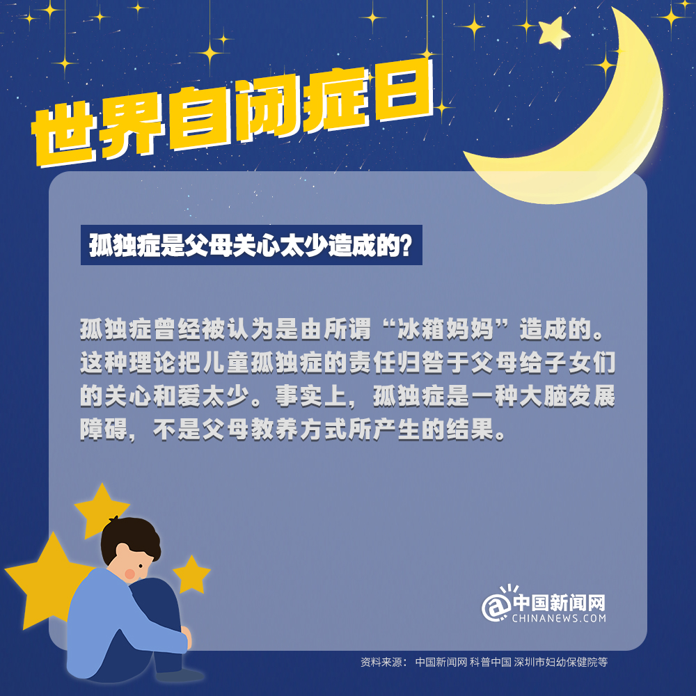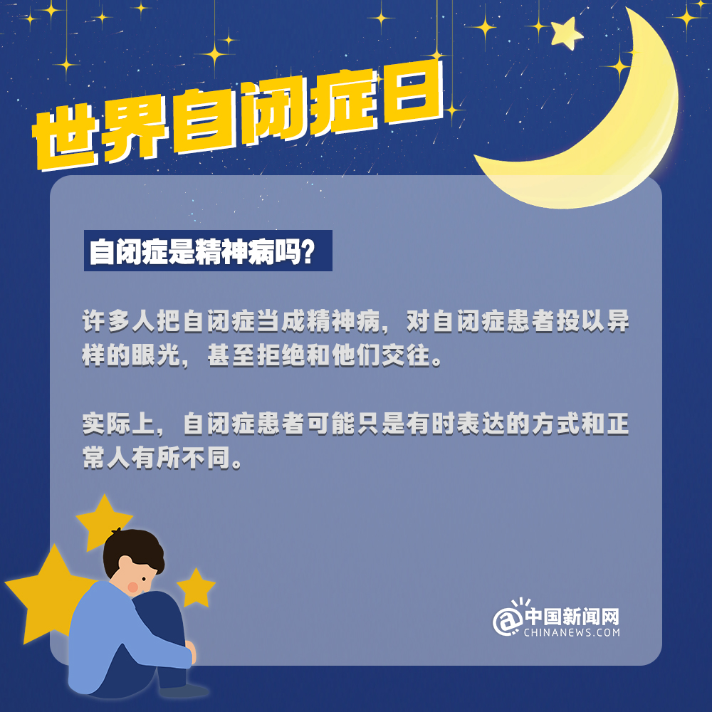 中新網(wǎng)4月2日電 自閉癥兒童,也被稱為“來自星星的孩子”,他們的情緒難以捉摸,他們的思想難以表達(dá),他們像星星一樣孤獨地游離在宇宙中……有數(shù)據(jù)顯示:目前中國自閉癥患者已超1300萬人。自閉癥有哪些認(rèn)知誤區(qū)?該如何早期識別自閉癥?詳情↓關(guān)愛自閉癥患者,讓星星的孩子有愛不孤單!