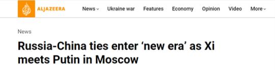 卡塔爾半島電視臺(tái)網(wǎng)站21日?qǐng)?bào)道稱,中俄元首簽署聯(lián)合聲明,將深化新時(shí)代中俄關(guān)系,俄中合作具有無(wú)限可能和廣闊前景。