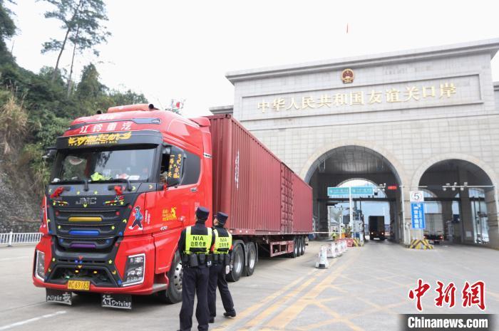 資料圖:廣西友誼關(guān)邊檢站民警檢查口岸出入境車輛?!×_曉 攝