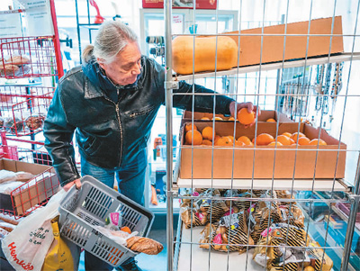 瑞典中央統(tǒng)計局近日公布的數(shù)據(jù)顯示,2022年2月至2023年2月間,瑞典通貨膨脹水平攀升,食品價格漲幅創(chuàng)72年來最高紀(jì)錄。圖為顧客在斯德哥爾摩一家慈善超市購買打折食品。
