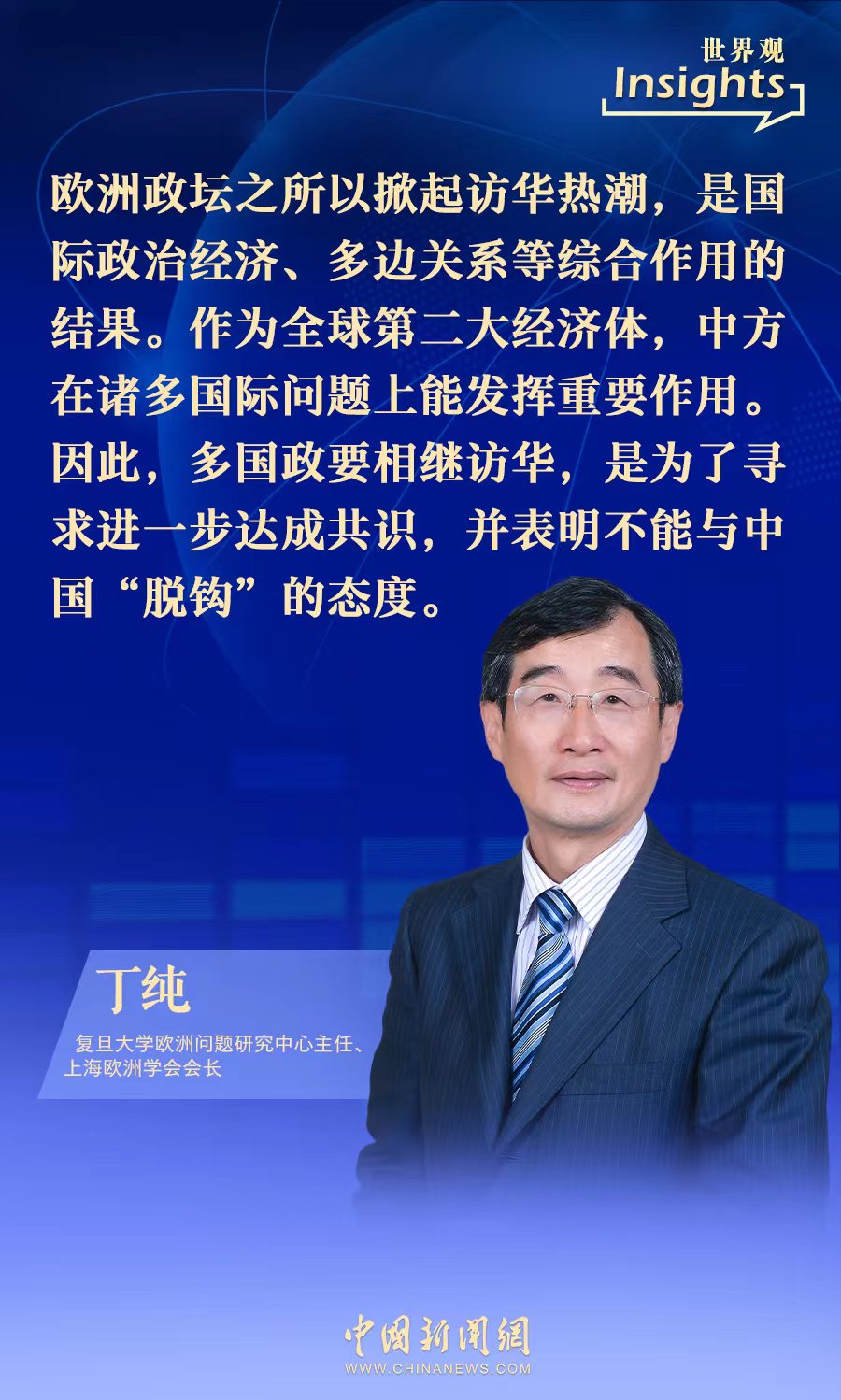 中新網(wǎng)4月7日電(甘甜)近日,復(fù)旦大學(xué)歐洲問題研究中心主任、上海歐洲學(xué)會會長丁純接受中新網(wǎng)采訪時表示,中國在諸多國際問題上能發(fā)揮重要作用,歐洲多國政要相繼訪華,是為了尋求進(jìn)一步達(dá)成共識,并表明不能與中國“脫鉤”的態(tài)度。