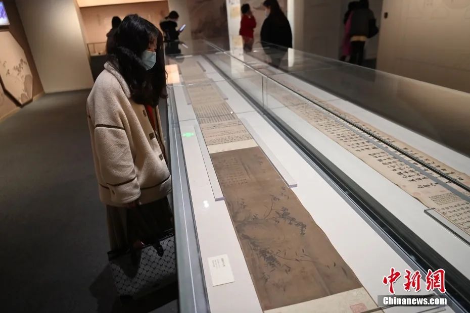 2023年1月16日,四川成都,四川博物院跨年大展“高山仰止回望東坡——蘇軾主題文物特展”迎來文物上新,《瀟湘竹石圖》《洞庭春色賦·中山松醪賦卷》《陽羨帖》手卷三件蘇軾真跡齊聚。圖為中國美術(shù)館藏蘇軾《瀟湘竹石圖》。中新社記者 安源 攝