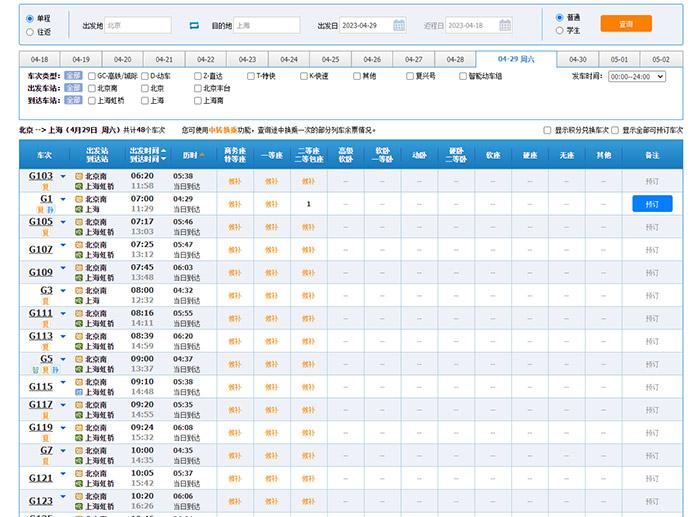 中新財(cái)經(jīng)18日登錄12306官網(wǎng)查詢發(fā)現(xiàn),4月29日北京-上海車票已幾乎全部售罄。