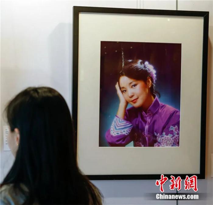 一位女士在北京華辰秋拍預(yù)展現(xiàn)場(chǎng)觀看二十世紀(jì)八十年代拍攝的鄧麗君肖像照。張浩 攝