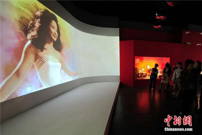 湖北武漢,參觀者在“追夢(mèng)——鄧麗君特展”上觀看鄧麗君的紀(jì)錄片。張暢 攝