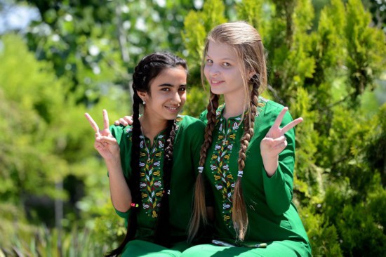 ↑土庫(kù)曼斯坦首都阿什哈巴德街頭的當(dāng)?shù)嘏ⅰ?/p>