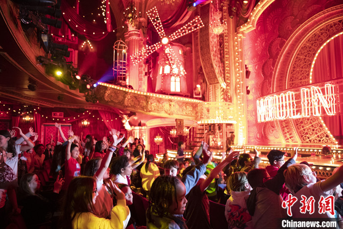 中新社紐約5月11日電 (記者 王帆)當?shù)貢r間11日,美國紐約逾千名中小學生來到百老匯艾爾赫施菲德劇院,探秘音樂劇《紅磨坊》的臺前幕后。