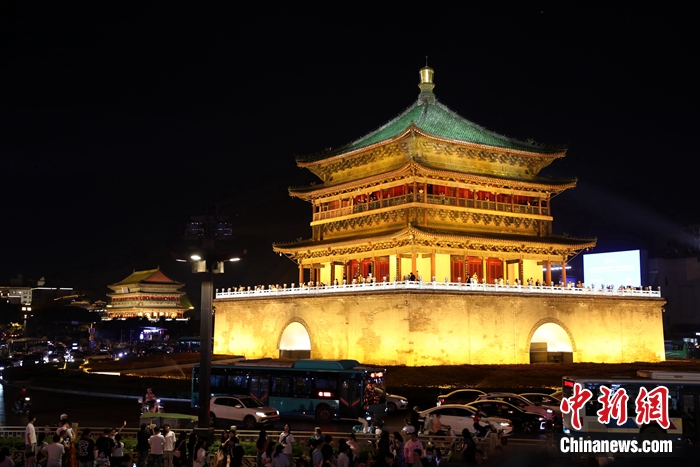 圖為夜色中的西安鐘鼓樓。張遠(yuǎn) 攝