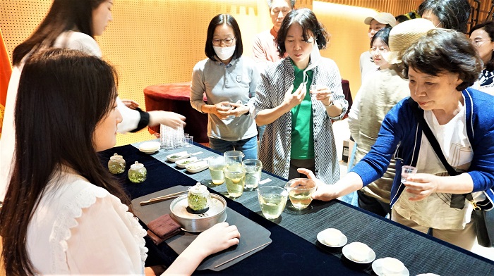 在講座上,韓中茶道香道協(xié)會講師李姃倫從綠茶的定義、綠茶的制茶工藝、中國的代表綠茶品種、綠茶的飲茶方法、綠茶的功效等方面詳細(xì)介紹了綠茶的相關(guān)知識。