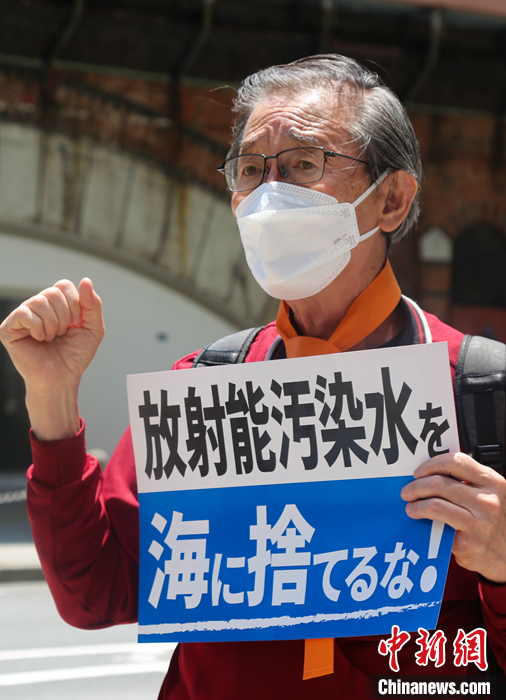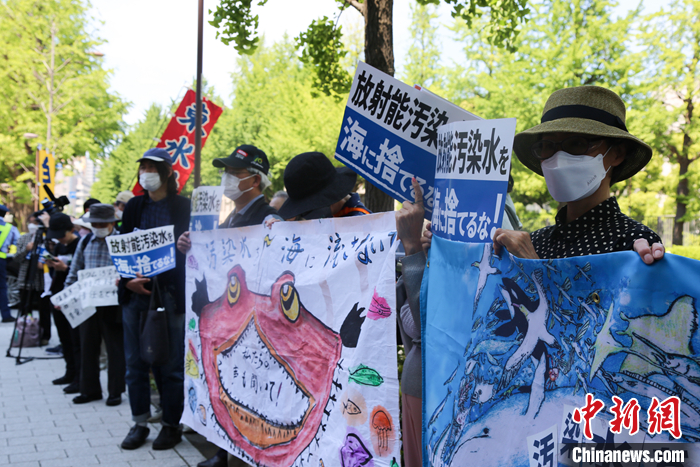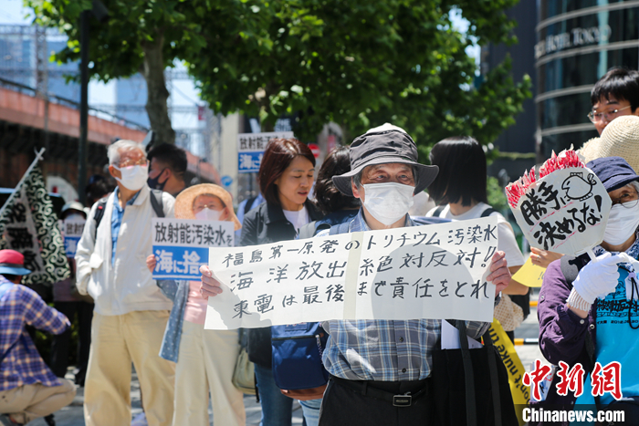 5月16日,日本民眾在東京電力公司總部前舉行集會(huì),表達(dá)對(duì)日本政府和東京電力公司持續(xù)強(qiáng)推福島核污染水排海計(jì)劃的強(qiáng)烈反對(duì)。 中新社發(fā) 蔣文月 攝