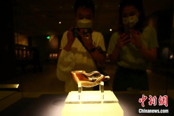 藏于陜西歷史博物館的鑲金獸首瑪瑙杯。張遠(yuǎn) 攝