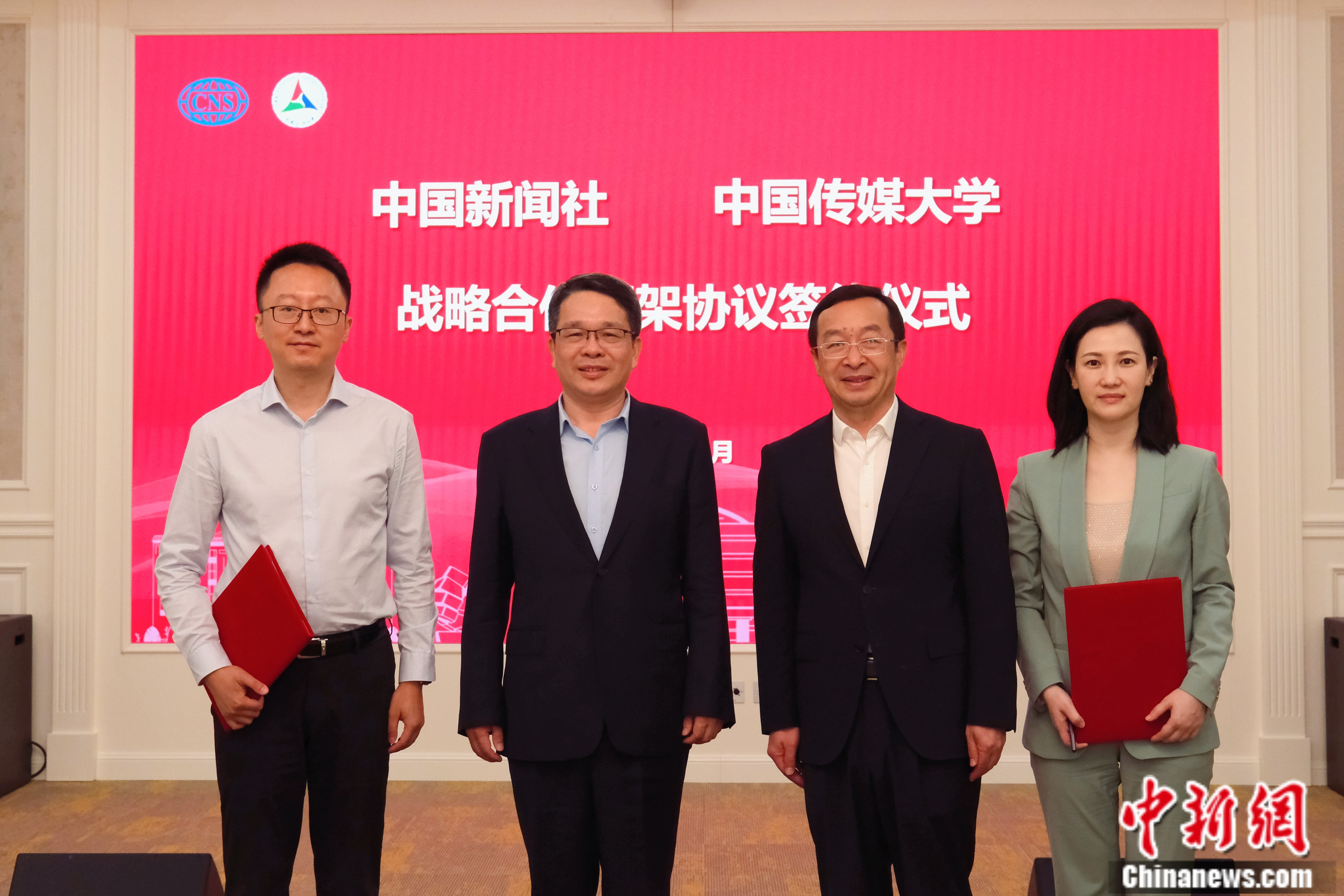 中新網(wǎng)北京5月30日電 2023年5月30日,在習(xí)近平總書記關(guān)于加強(qiáng)國際傳播能力建設(shè)重要講話發(fā)表兩周年之際,中國新聞社與中國傳媒大學(xué)戰(zhàn)略合作框架協(xié)議簽約儀式在北京舉行。中國新聞社社長陳陸軍,中國傳媒大學(xué)校長張樹庭,中國新聞社副總編輯、中國新聞網(wǎng)總裁俞嵐,中國傳媒大學(xué)副校長楊懿等出席簽約儀式。