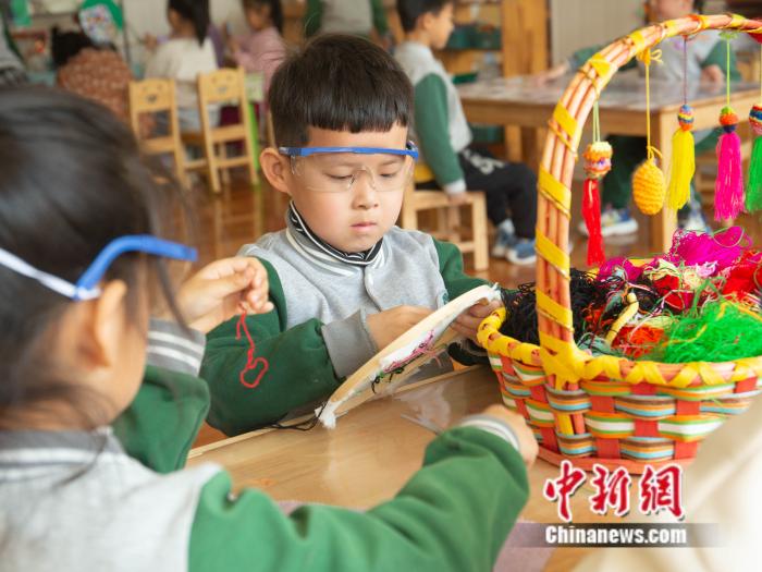 最初,老師會進行集體教學,等孩子們都掌握相關(guān)技能后,就由孩子們自主活動,他們在一旁提供指導和保障孩子安全?!坝行┖⒆右粌商炀湍軐W會繡自己的名字?!蓖跗G青說,這些活動后,許多孩子越來越自信。