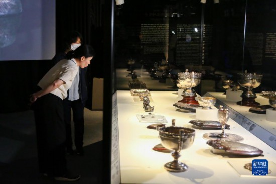 這是6月1日在韓國(guó)首爾歷史博物館拍攝的“海上銀珠·璀璨華光——上海市歷史博物館館藏銀器展”展品。新華社記者 王益亮 攝