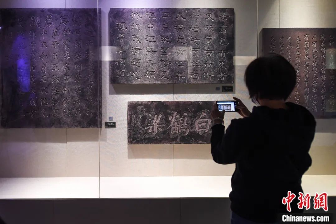 游客在白鶴梁水下博物館的地面陳列館參觀。何蓬磊 攝