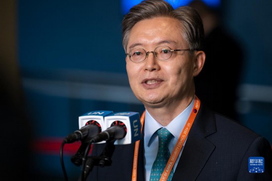 6月6日,在位于紐約的聯(lián)合國總部,韓國常駐聯(lián)合國代表黃浚局在韓國當(dāng)選聯(lián)合國安理會非常任理事國后在記者見面會上講話。新華社發(fā)(聯(lián)合國供圖/洛伊·費利佩攝)