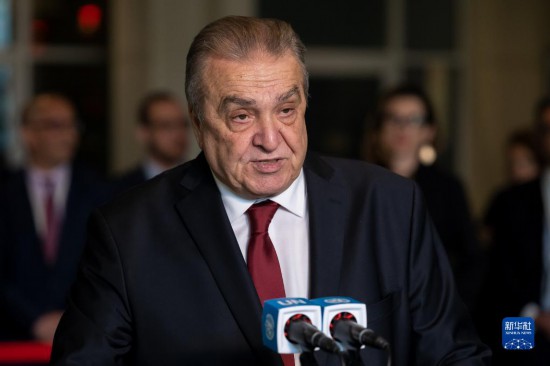 6月6日,在位于紐約的聯(lián)合國總部,阿爾及利亞常駐聯(lián)合國代表阿馬爾·本賈瑪在阿爾及利亞當(dāng)選聯(lián)合國安理會非常任理事國后在記者見面會上講話。新華社發(fā)(聯(lián)合國供圖/洛伊·費利佩攝)