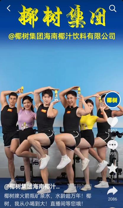 中新財(cái)經(jīng)發(fā)現(xiàn),盡管不賣貨,但在展示主打產(chǎn)品椰汁外,一款外形設(shè)計(jì)酷似火箭、名為“長(zhǎng)壽泉”的礦泉水正越來(lái)越頻繁地出現(xiàn)在直播間,“嚇火茶”、椰子油等其他產(chǎn)品也多次出鏡,主播們的廣告詞則變成了:“除了椰汁,椰樹還有什么?”
