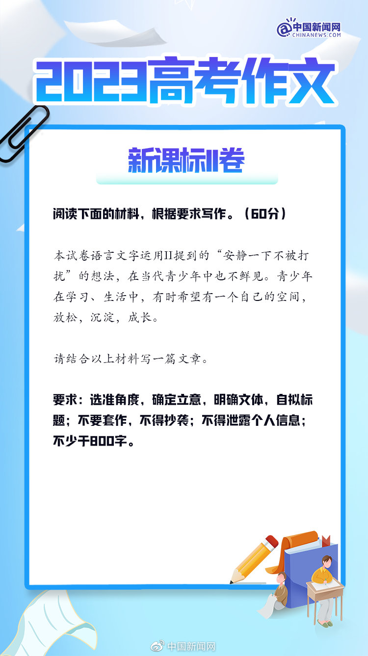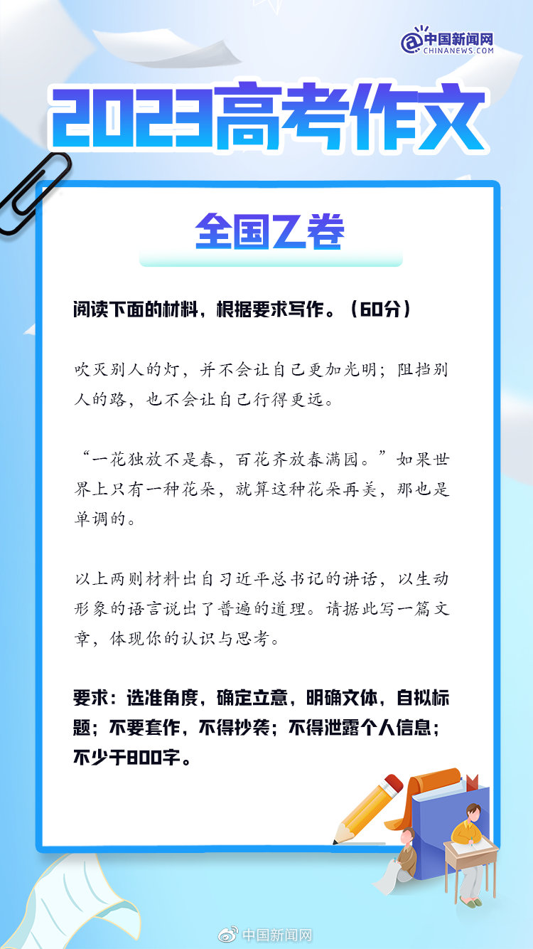 據(jù)教育部新聞辦官方微信7日消息,2023年高考全國(guó)卷語(yǔ)文作文題出爐,具體如下: