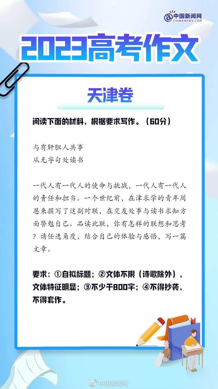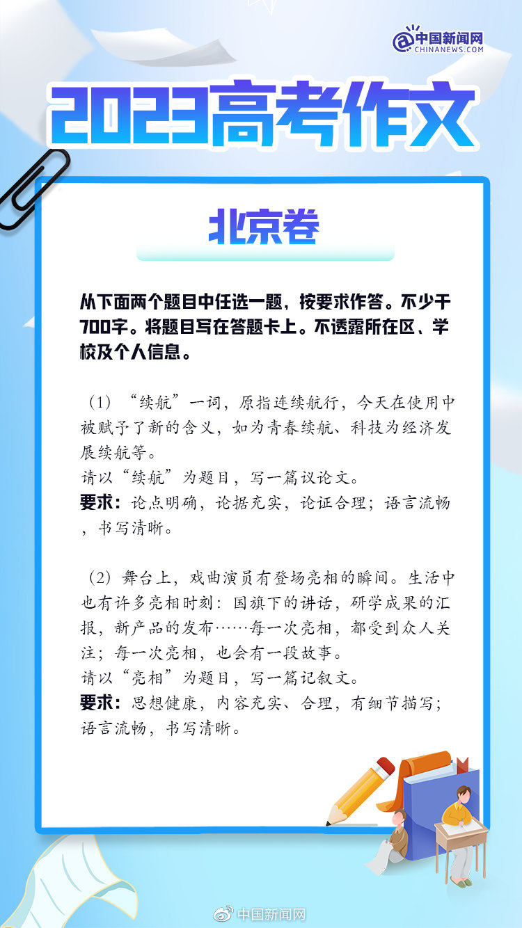 中新網(wǎng)6月7日電 2023年全國(guó)高考今日開(kāi)考,語(yǔ)文是首門(mén)考試科目。其中,受人關(guān)注的作文題目已陸續(xù)公布,快來(lái)圍觀!各地高考語(yǔ)文作文題目匯總↓↓↓