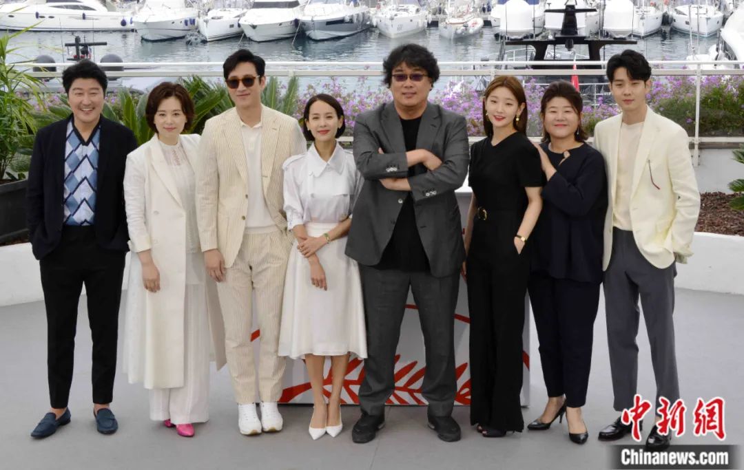 韓國影片《寄生蟲》主創(chuàng)團(tuán)隊(duì)亮相第72屆戛納電影節(jié)。李洋 攝
