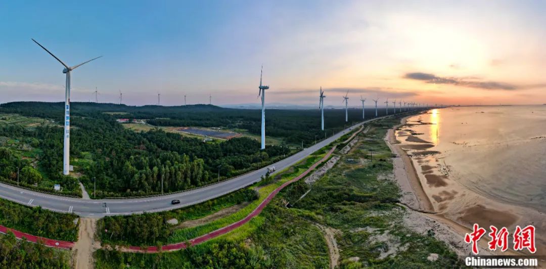 山東省榮成市北環(huán)海路,風(fēng)力發(fā)電機(jī)與沿海防護(hù)林形成一道靚麗的風(fēng)景線。近年來,中國大力推廣風(fēng)電產(chǎn)業(yè)等“綠色能源”,實現(xiàn)生態(tài)保護(hù)和可持續(xù)發(fā)展。楊志禮 攝